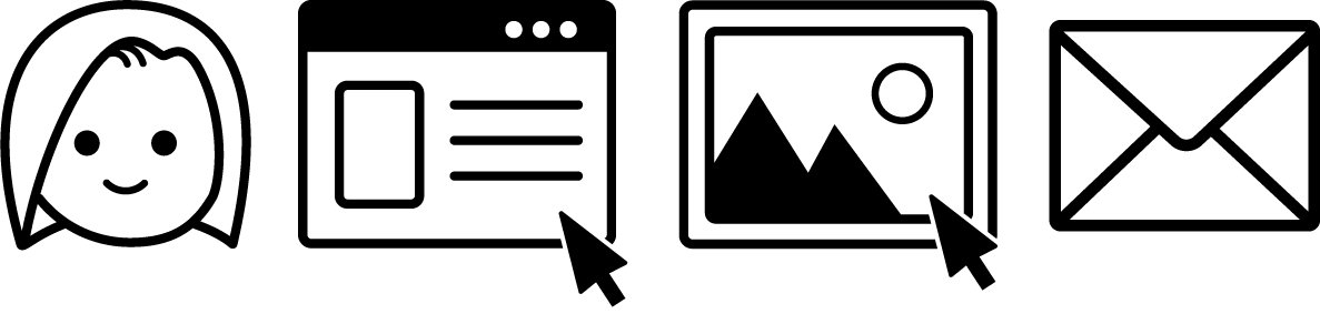 「自己紹介」「このHPについて」「ギャラリー」「お問い合わせ」のイメージで作成しました。